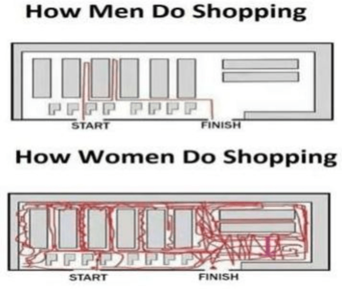 Note: By Lakshmi et al., 2017, the figure shows the difference between how men and women do shopping